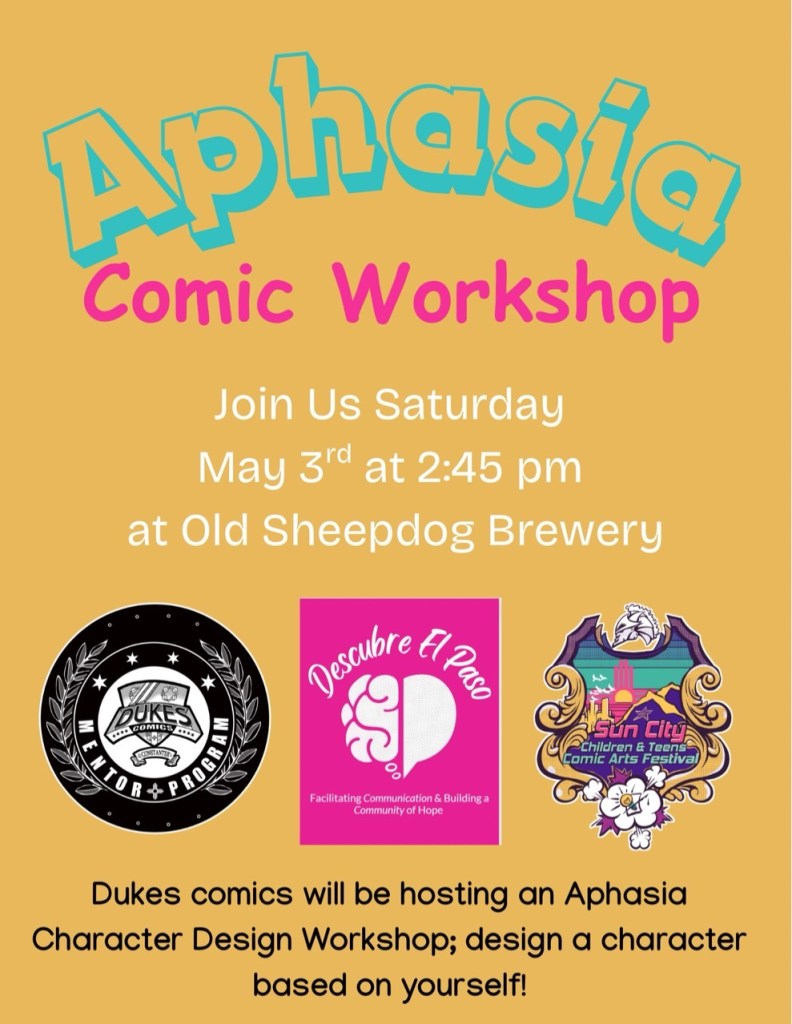 3:00PM Aphasia Comic Workshop – Please join El Paso Aphasia Connection for a character design workshop facilitated by DUKEScomics.