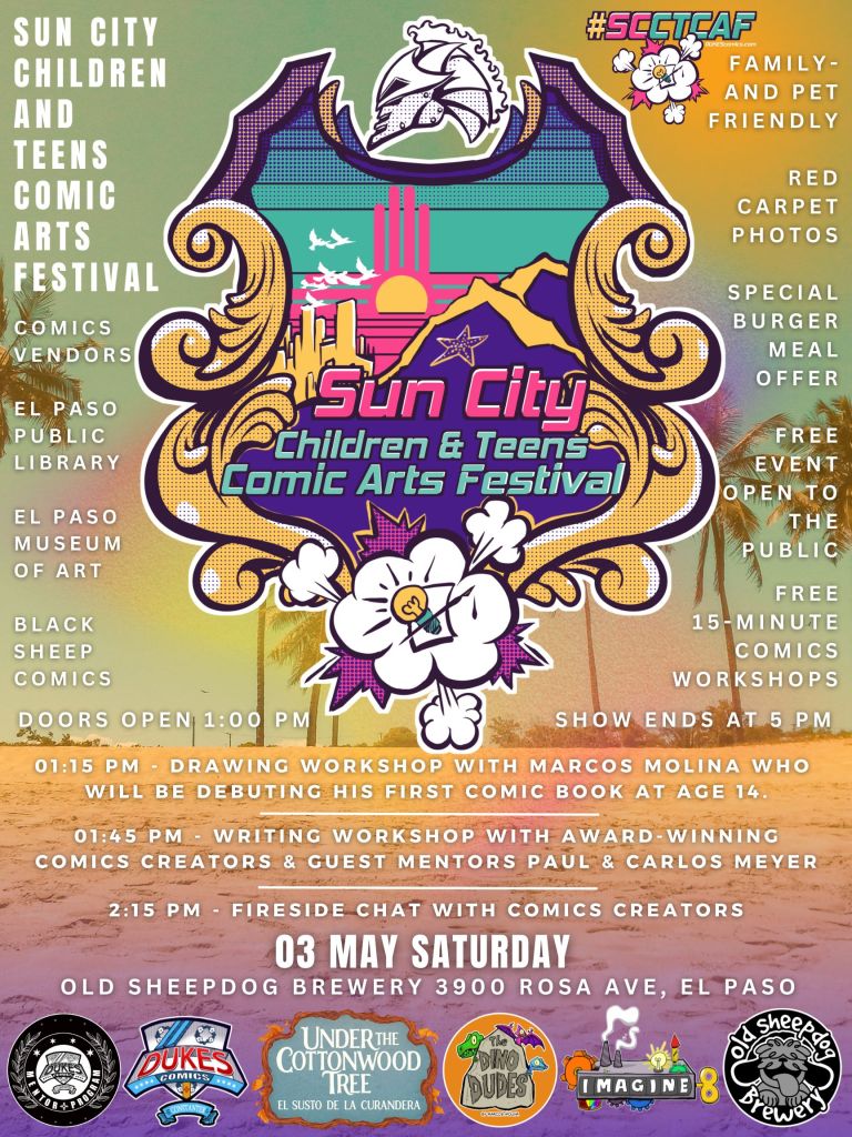 This event is free and open to the public and will take place at Old Sheepdog Brewery in El Paso, Texas. Sun City CTCAF will feature comic art creations by students between the ages of 10 to 19. Please come out and support their work and the future of comics.